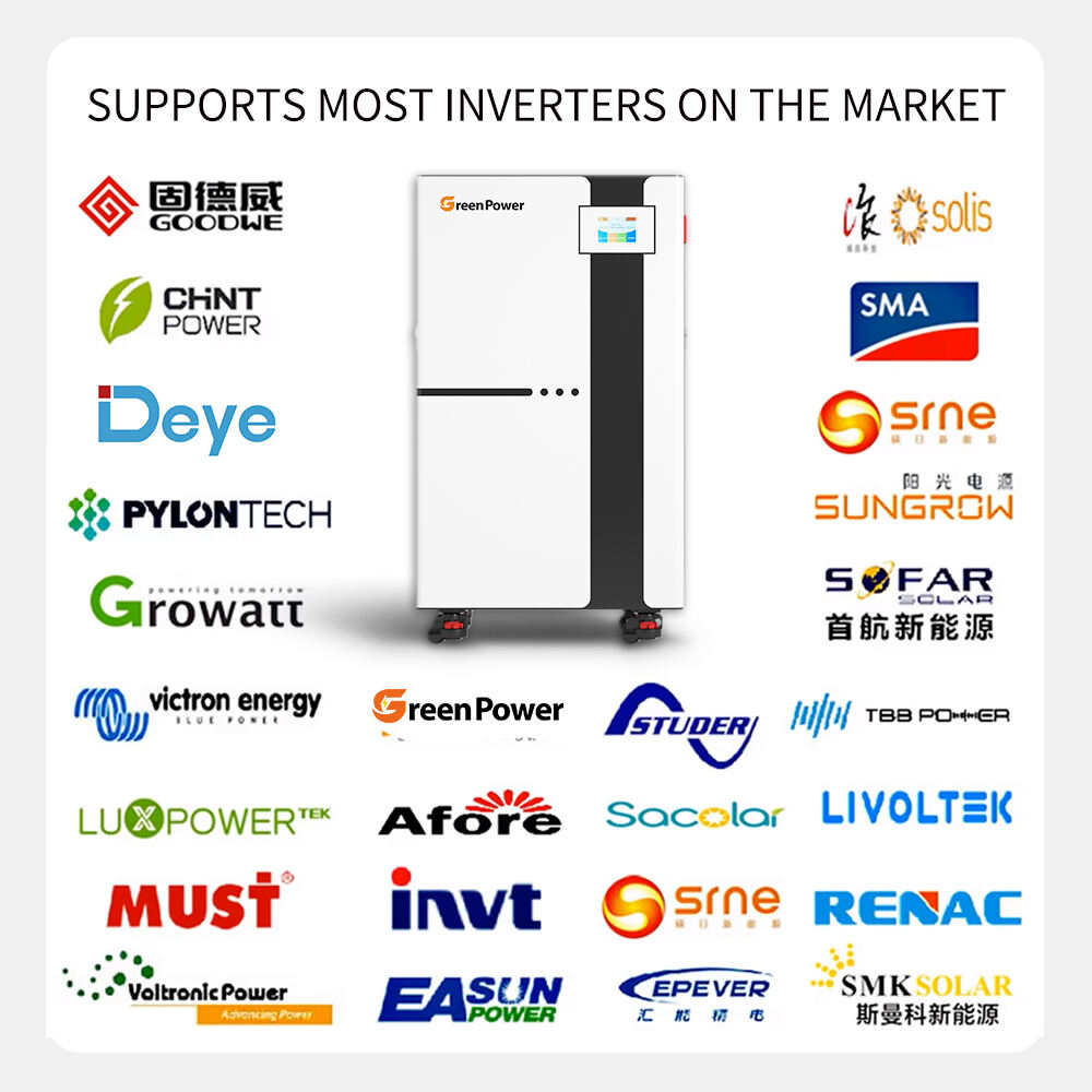 GreenPower Solar Storage Battery IP20 Waterproof 51.2V 300ah 320ah 15KWh 16KWh Vertical Lifepo4 Home Energy Storage Battery
