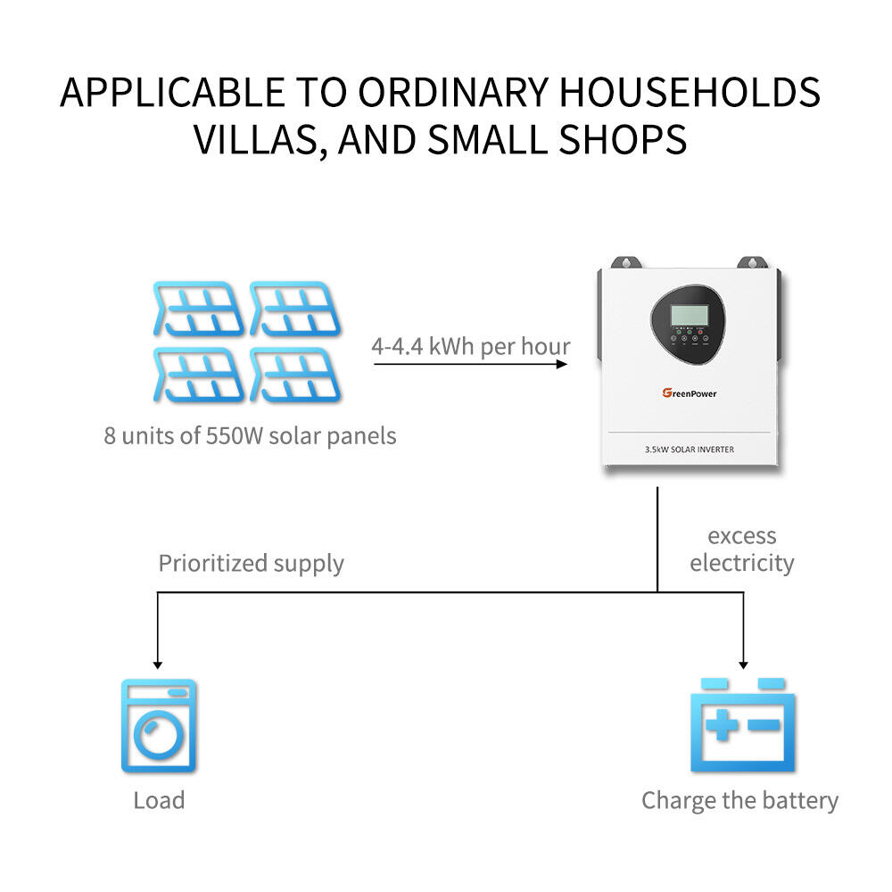 GreenPower Желіден тыс күн инверторы Бір фазалық күн инверторы MPPT 3,5 кВА 3,5 кВт 3500 Вт желіден тыс күн инверторы Фотоэлектрлік кіріс